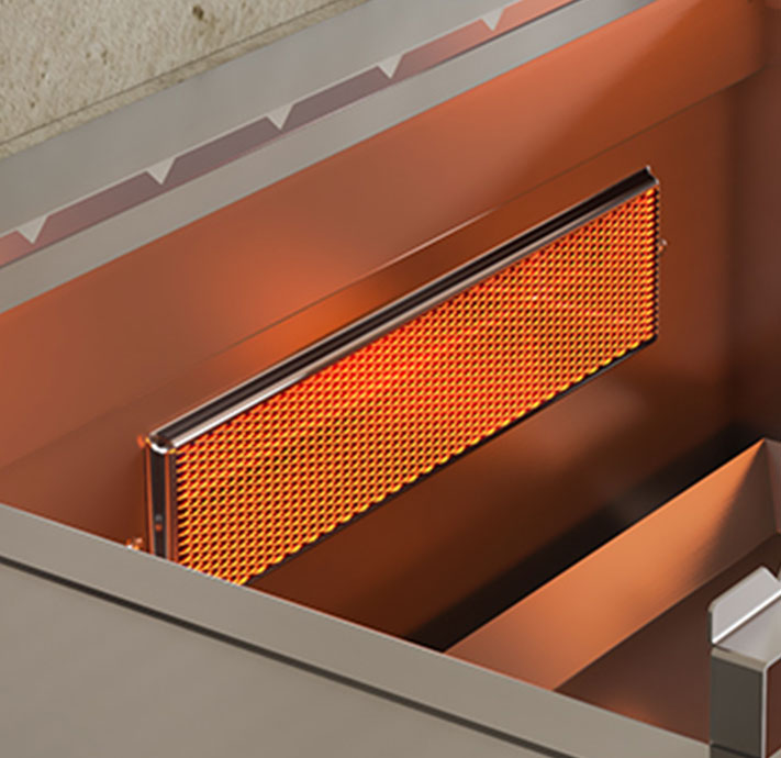 - Queimador: 01 queimador a gás infravermelho (potência de 2.250 kcal/h por queimador);
